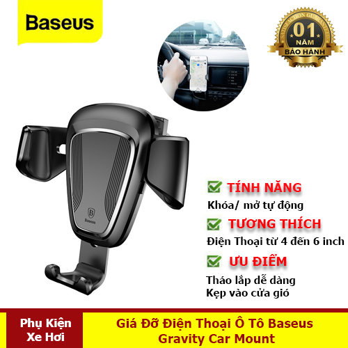 - Hàng chính hãng Baseus. Thông Số Giá Đỡ Điện Thoại Ô Tô Baseus Gravity Car Mount
