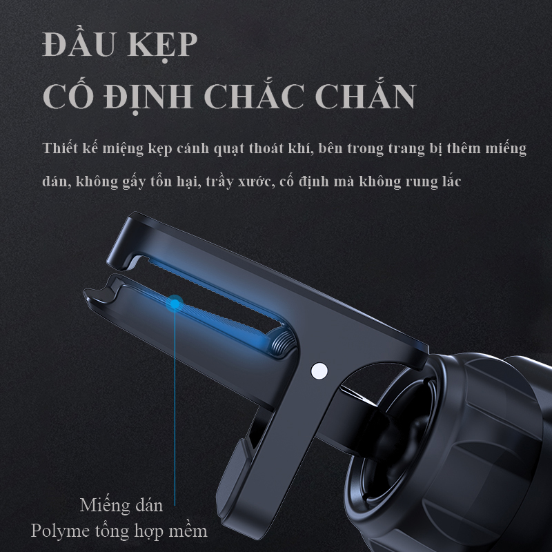 ĐẶC ĐIỂM NỔI BẬT + Đế hít bằng keo chắc chắn, có thể gắn vào kính chắn gió hoặc táp lô. + Thân kép có thể điều chỉnh độ dài + Phần kẹp điện