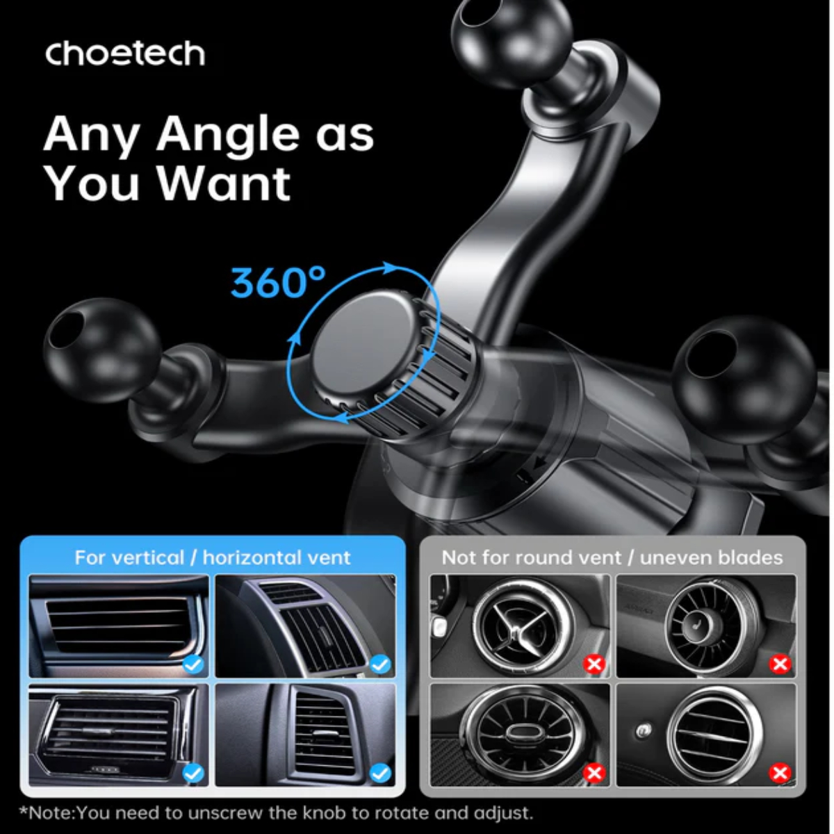 - Chất liệu: ABS+PC – Giá đỡ sạc không dây Choetech T231 là giải pháp tiện lợi và hiện đại dành cho người dùng smartphone khi lái xe. Sản phẩm tích hợp cả chức năng giá đỡ và sạc không dây nhanh, giúp người dùng sử dụng điện thoại an toàn và thuận tiện hơn trên mọi hành trình. Thông tin chi tiết Sạc nhanh không dây công suất 15W – Hỗ trợ sạc không dây chuẩn Qi 2 với công suất tối đa lên đến 15W, tương thích với nhiều dòng điện thoại như iP, Sam-sung, Xiao-mi và các thiết bị hỗ trợ chuẩn Qi. Đảm bảo sạc nhanh và an toàn cho thiết bị ngay cả khi đang di chuyển. Thiết kế thông minh có tản nhiệt – Phần lưng giá đỡ được trang bị hệ thống các khe tản nhiệt, giúp giảm thiểu nhiệt lượng tỏa ra trong quá trình sạc, bảo vệ tuổi thọ pin và giữ thiết bị luôn hoạt động ổn định. Xoay 360 độ linh hoạt – Giá đỡ có khả năng xoay 360 độ, cho phép người dùng điều chỉnh góc nhìn điện thoại ngang hoặc dọc tùy theo nhu cầu sử dụng như xem bản đồ, nghe gọi hoặc giải trí. Lắp đặt dễ dàng trên khe gió điều hòa – Thiết kế kẹp chắc chắn giúp cố định giá đỡ lên khe gió điều hòa ô tô, đảm bảo độ ổn định và không gây cản trở không gian nội thất. Giữ điện thoại chắc chắn – Cơ chế giữ điện thoại thông minh với phần đệm chống trượt giúp thiết bị luôn được cố định, không bị rung lắc hay rơi rớt trong quá trình lái xe. Hình ảnh Giá đỡ sạc không dây trên ô tô Choetech T231 công suất 15w chuẩn Qi2 xoay 360 độ có tản nhiệt (Hàng chính hãng)