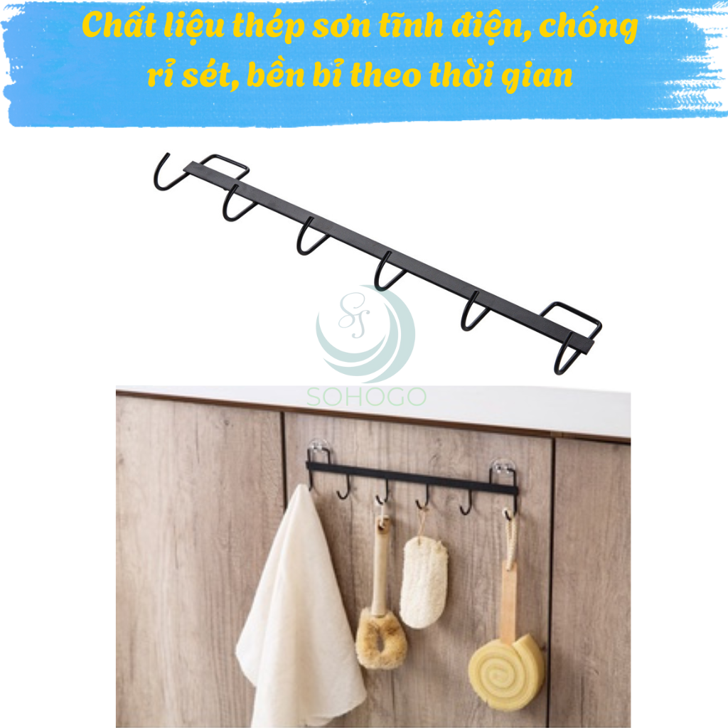 Mua tại TiktokMô tả chi tiết: Thanh treo tường đa năng với thiết kế 6 móc tiện dụng, giúp treo gọn gàng các vật dụng trong nhà bếp, nhà tắm hoặc tủ bếp. Sản phẩm được làm từ kim loại sơn tĩnh điện chống gỉ sét, kết hợp cùng keo dán trong suốt chịu lực tốt, không cần khoan đục tường, dễ dàng lắp đặt. Ưu điểm nổi bật: