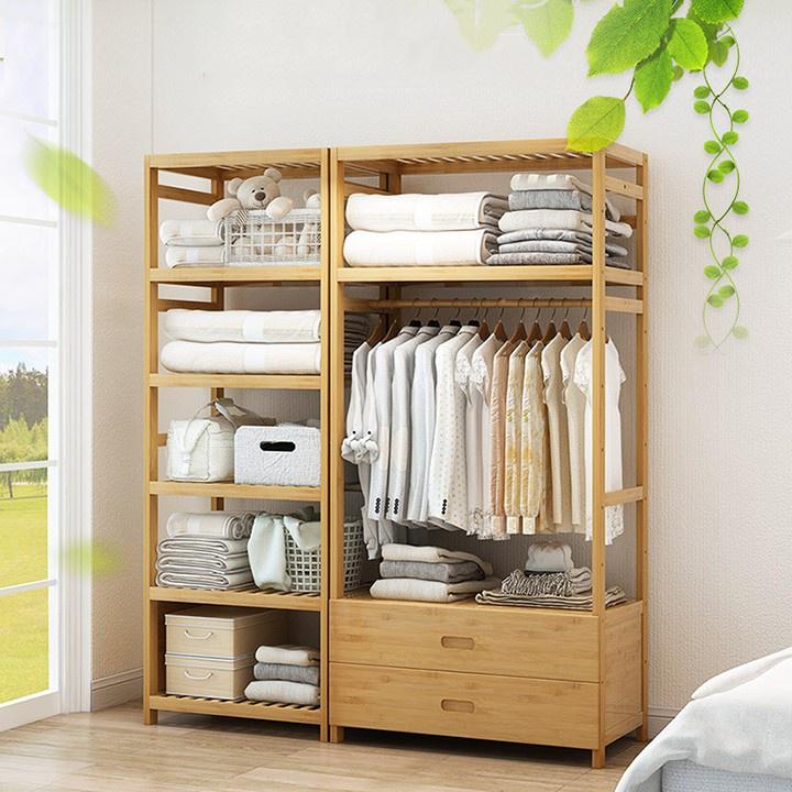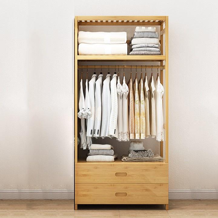 Giá Treo Quần Áo _ Tủ Quần Áo Gỗ Tre 2 Ngăn Kéo Kèm Kệ Chứa Đồ Phong Cách Hàn Quốc Đẹp Độc Đáo KT 70cm TUR068