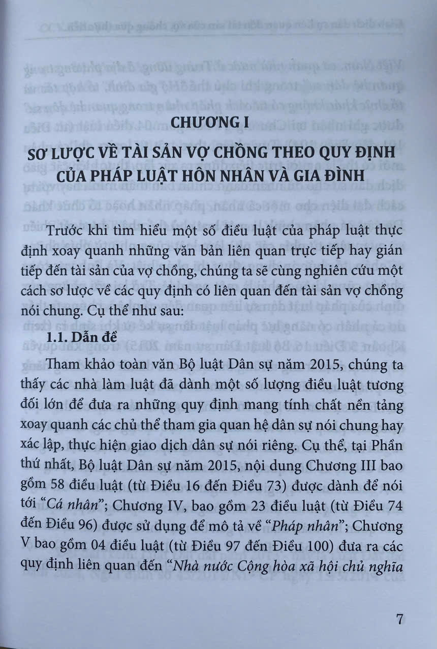 Mục lục: Chương 1: Những quy định chung Chương 2: Kết hôn Chương 3: Quan hệ giữa và chồng Chương 7: Cấp dưỡng Chương 8: Quan hệ hôn nhân và gia đinh có yếu tố