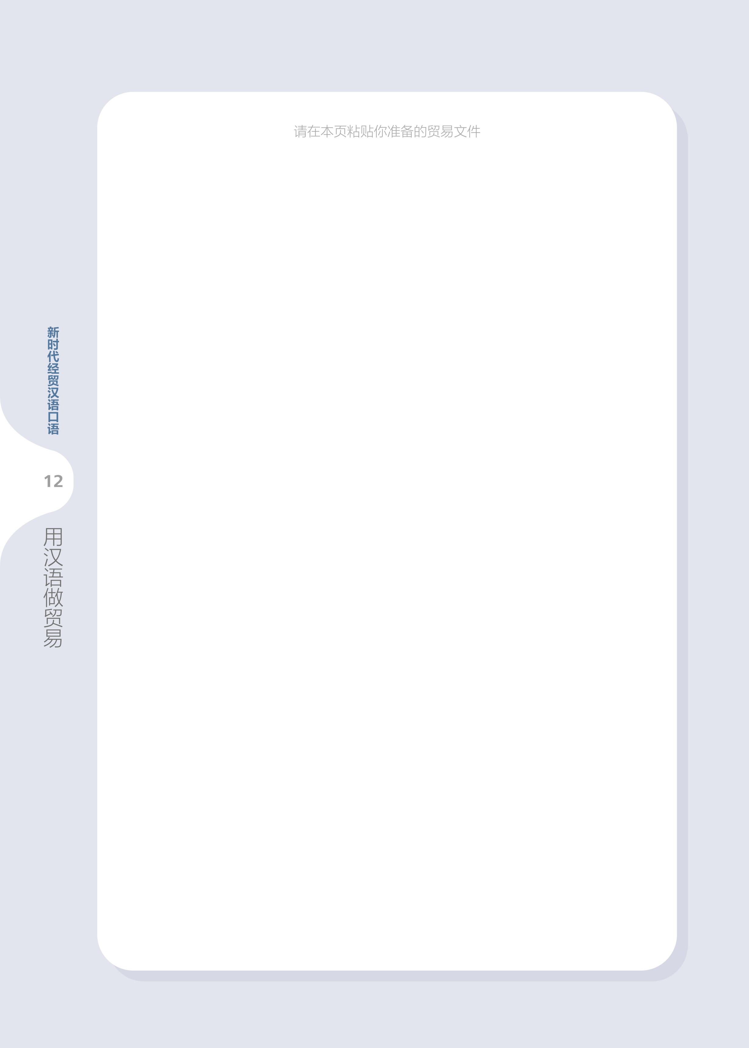 Những năm gần đây, cùng với sự phát triển không ngừng của kinh tế Trung Quốc, giao lưu giữa Trung Quốc và các nước trên thế giới trong lĩnh vực kinh tế thương mại ngày càng thường xuyên và sâu rộng, nhu cầu của cộng đồng quốc tế về nguồn nhân lực chuyên môn tiếng Trung trong lĩnh vực kinh tế thương mại - những người hiểu văn hóa kinh doanh Trung Quốc, quen thuộc với quy trình hợp tác thương mại và có thể sử dụng tiếng Trung để làm việc - cũng ngày càng cấp thiết. Để đáp ứng tốt hơn nhu cầu này, nhiều trường học đã mở các khóa học tiếng Trung kinh tế thương mại, đào tạo nhân tài có thể sử dụng tiếng Trung để làm công việc kinh doanh hoặc thương mại quốc tế, xây dựng cầu nối cho sự kết nối giữa các quốc gia. Chuỗi khóa học “Tiếng Trung giao tiếp thương mại” của Học viện Tiến tu Hán ngữ thuộc trường Đại học Ngôn ngữ Bắc Kinh đã được mở gần hai mươi năm, người biên soạn đã giảng dạy khóa học này tại Học viện hơn mười năm, tích lũy được nhiều kinh nghiệm về chương trình học và giảng dạy. Trong thực tiễn giảng dạy, chúng tôi đã lên kế hoạch biên soạn bộ “Giáo trình tiếng Trung giao tiếp thương mại Kỷ nguyên mới”, bao gồm hai tập: “Giáo trình tiếng Trung giao tiếp thương mại Kỷ nguyên mới: Tiếng Trung thực chiến trong công sở” tập trung vào ngôn ngữ kinh doanh trong công ty và “Giáo trình tiếng Trung giao tiếp thương mại Kỷ nguyên mới: Tiếng Trung thực chiến trong kinh doanh quốc tế” tập trung vào ngôn ngữ thương mại quốc tế.