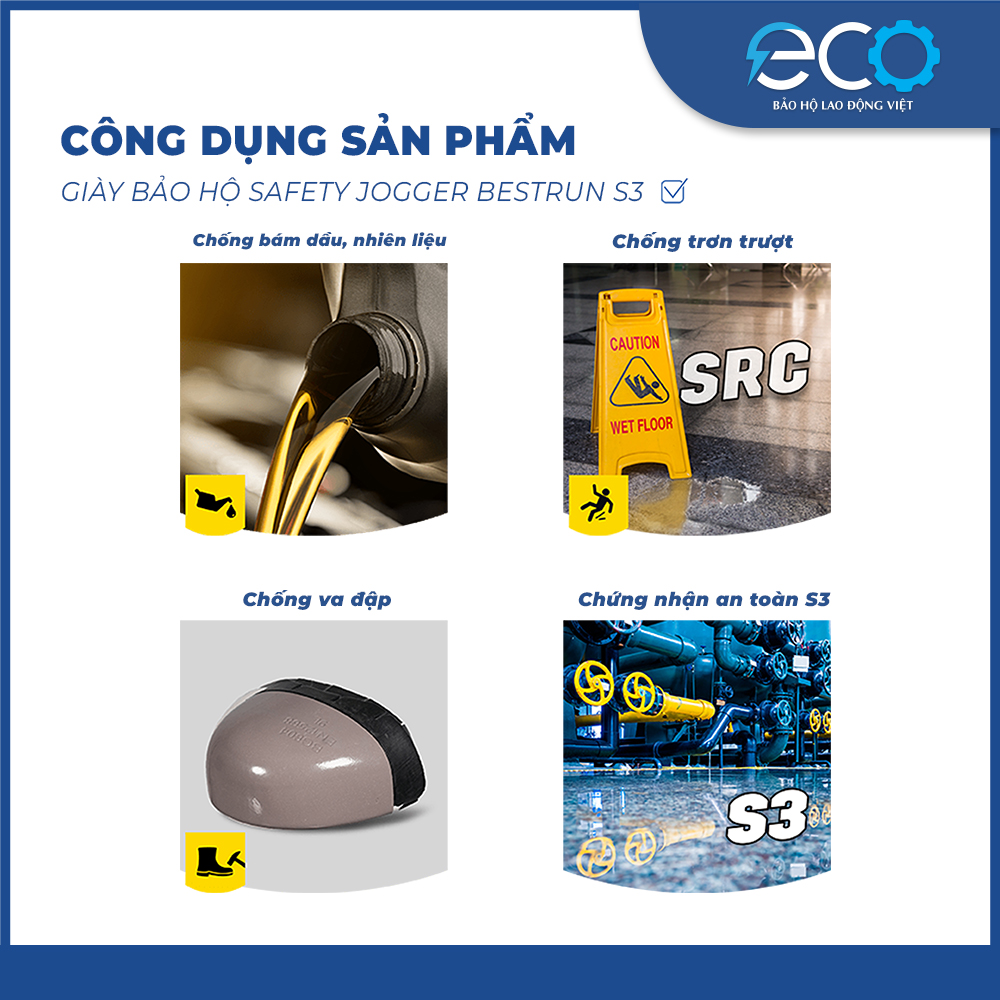 iày bảo hộ Jogger Bestrun tiêu chuẩn quốc tếvới thiết kế gọn nhẹ, ôm bàn chân tạo cảm giác thoải mái trong suốt quá trình làm việc THÔNG SỐ KỸ THUẬT • Thương Hiệu: Jogger