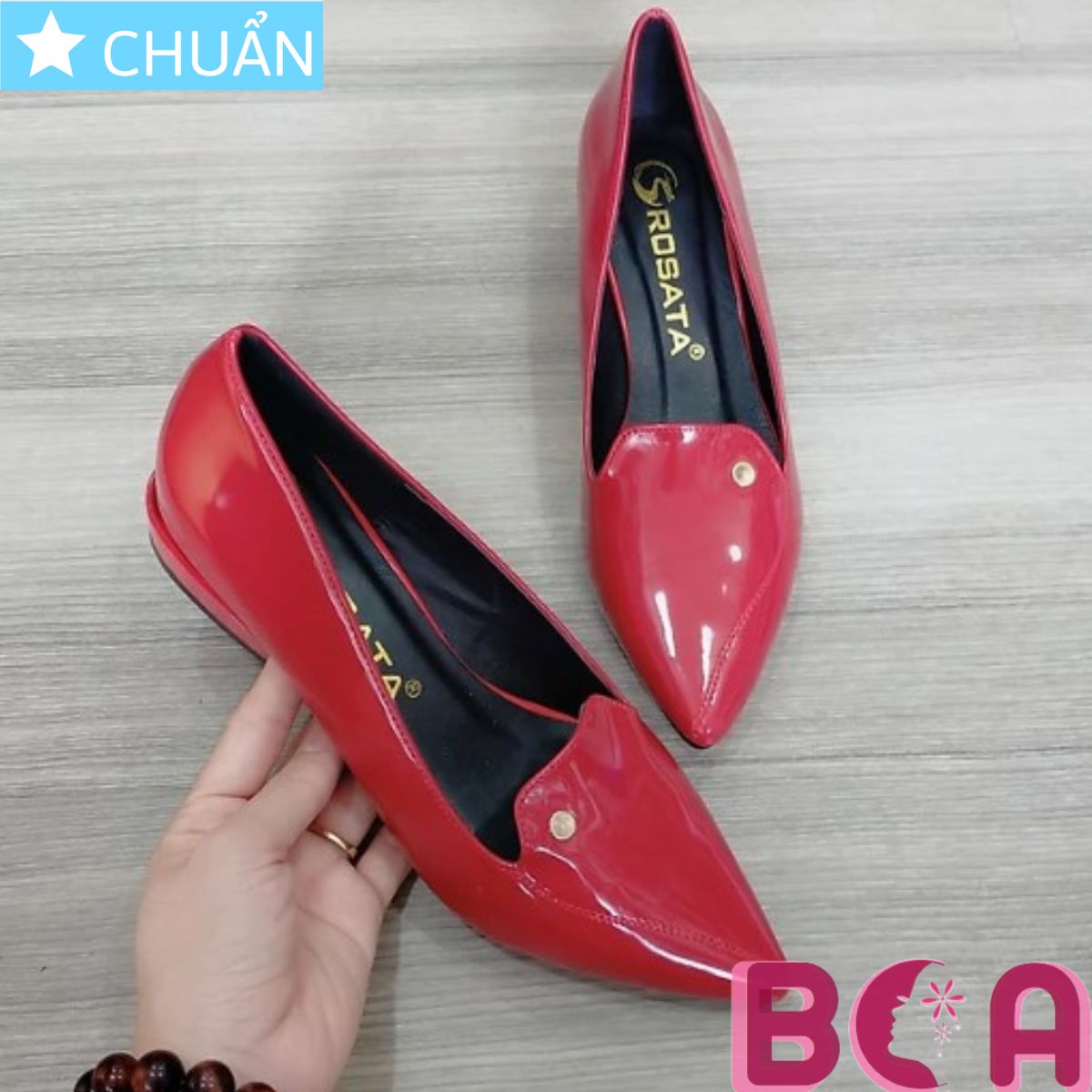 Giày búp bê nữ mũi nhọn 2p RO358 ROSATA tại BCASHOP màu đỏ, gót vuông viền kim loại lạ mắt và rất sang chân