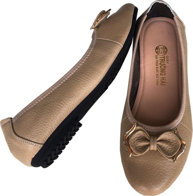 ✨Giày búp bê nữ Trường Hải màu kem da bò thật mềm mại , êm ái bền chắc,gắn nơ sang trọng, đế cao su vững trãi, thiết kế hiện đại, tinh tế, thời trang BB013