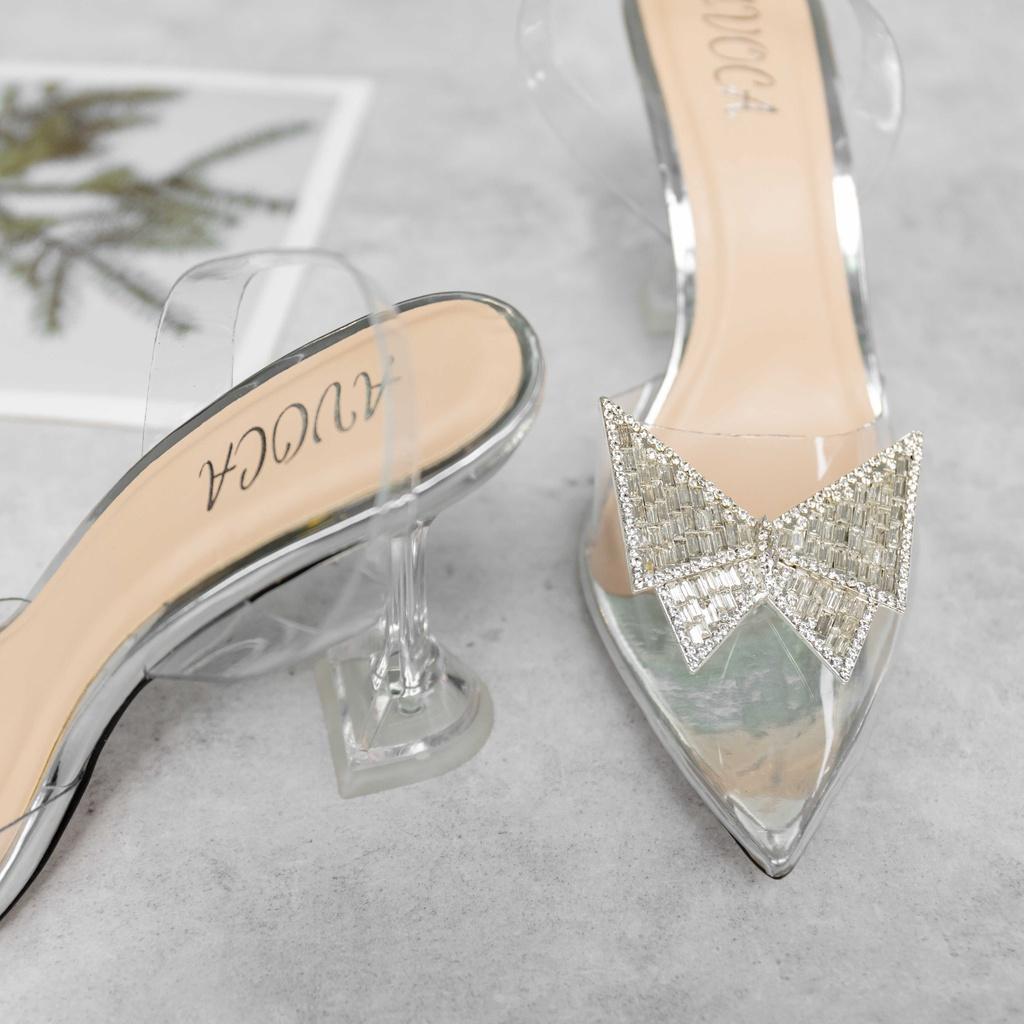 ✨Giày cao gót màu bạc đáng yêu mũi nhọn đính bướm lấp lánh ( giao hỏa tốc - ping - bảo hành 1 năm)
