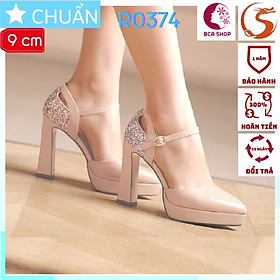 Giày cao gót nữ 9pRO374 thời trang nữ cao cấp ROSATA tại BCASHOP mũi nhọn, quai ngang, gót vuông - màu Nude
