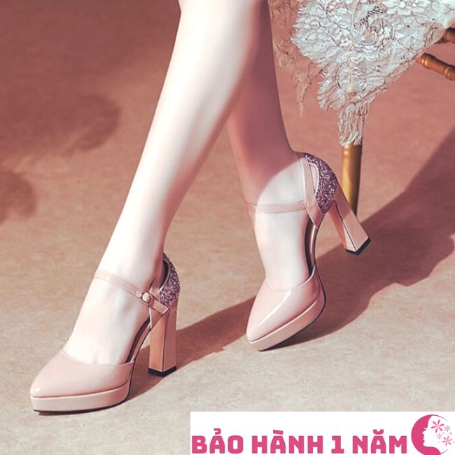Mã A9087 Giá 920K Cao Gót Nữ Huesin Mũi Nhọn Gót Vuông Phong Cách Âu Mỹ Giày Dép Nữ Chất Liệu G03