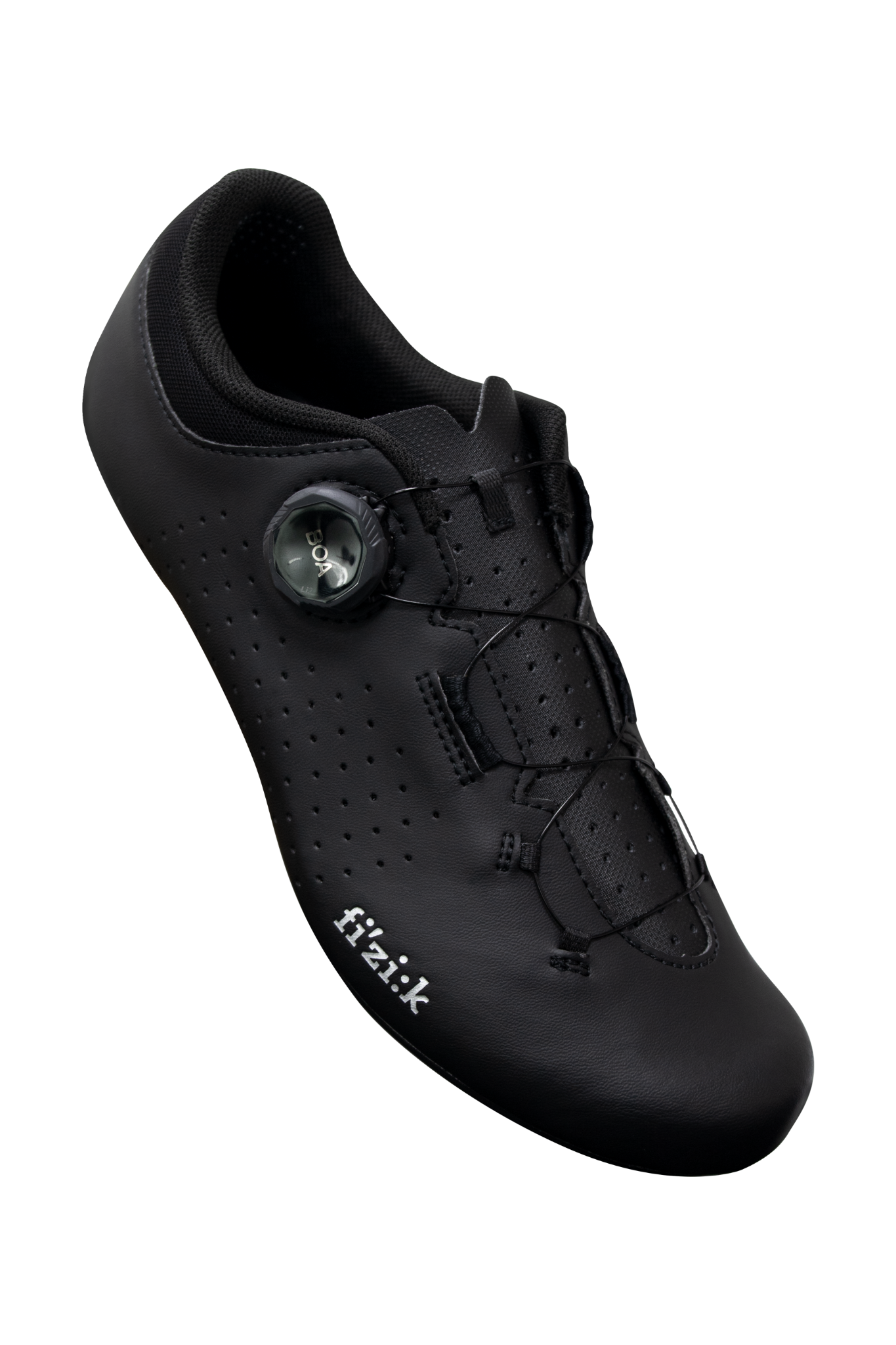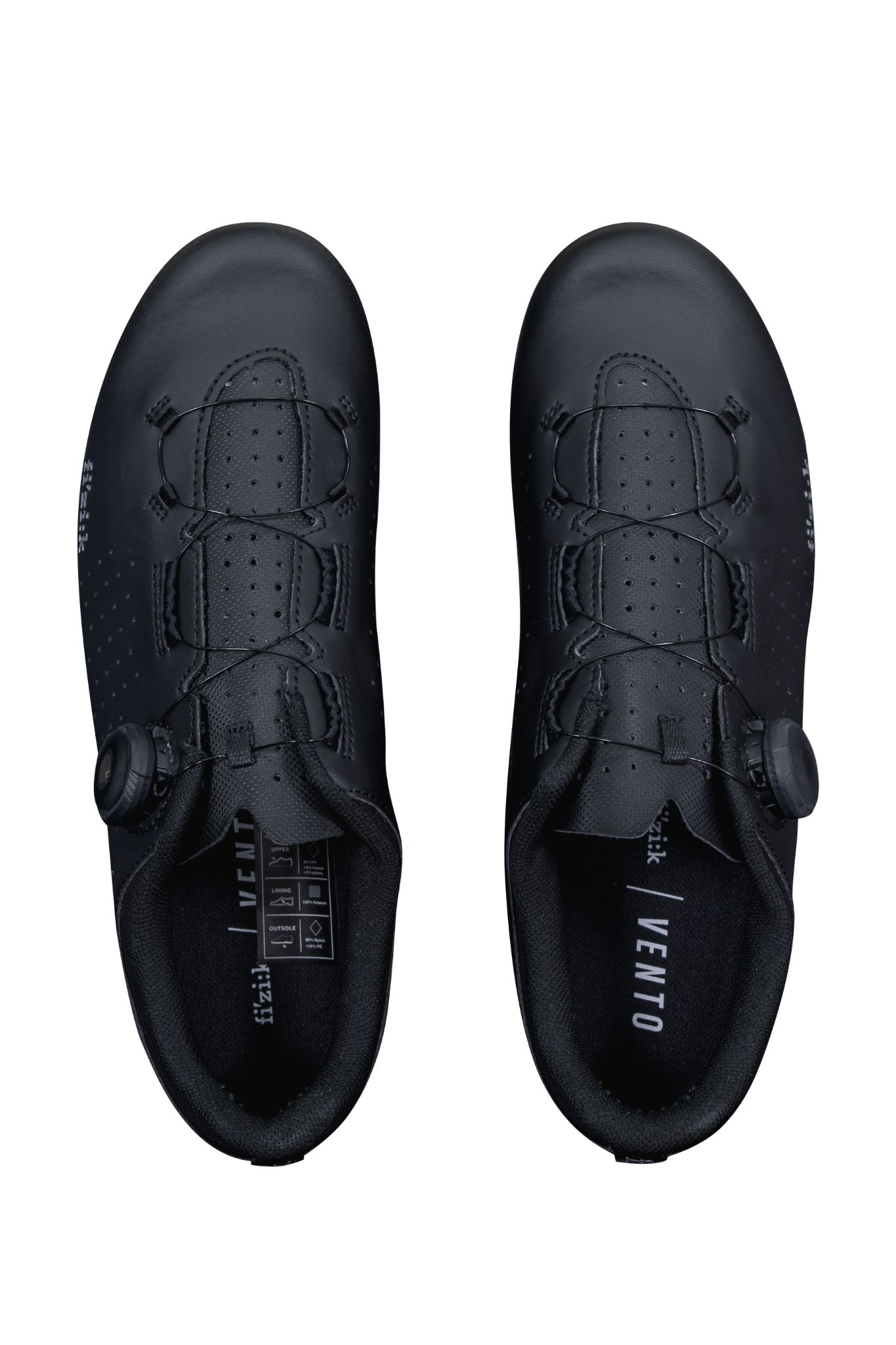 Giày xe đạp đường trường Fizik Vento Omnia được thiết kế hướng đến hiệu suất với toàn bộ mặt trên làm từ vải PU với các lỗ li ti bất đối xứng để làm mát.