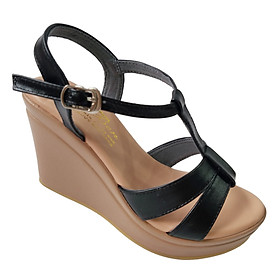 Giày đế xuồng xăng đan nữ 9.5cm màu đen Trường Hải