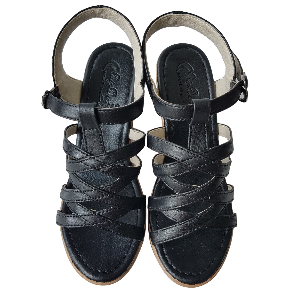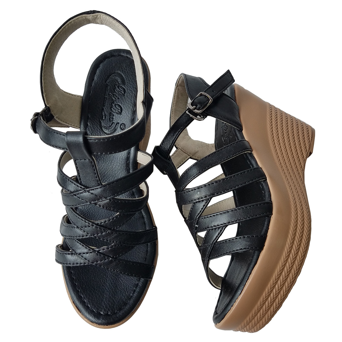 Dép xăng đan nữ đế vuông cao 5cm da bò thật