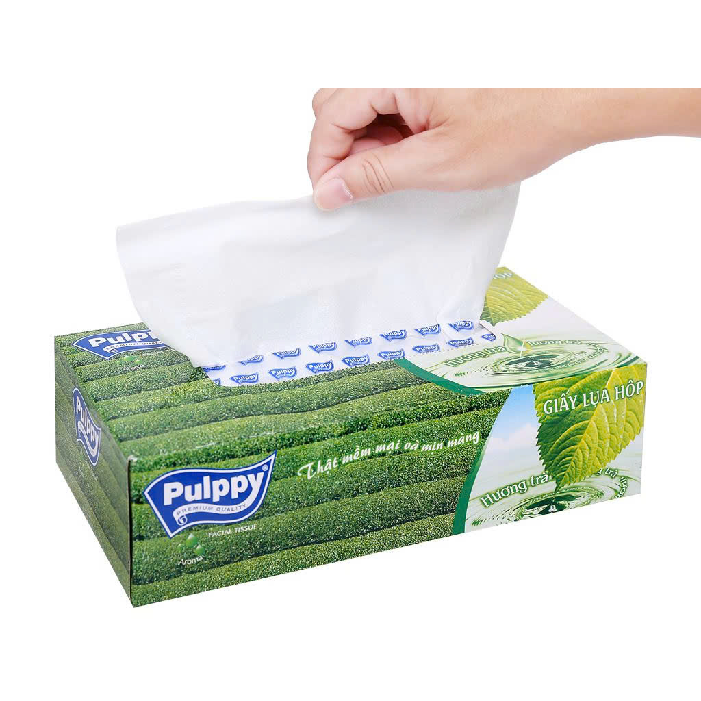 Giấy Lụa Hộp Pulppy Hương Trà Khăn Giấy Rút 100 Tờ 2 Lớp