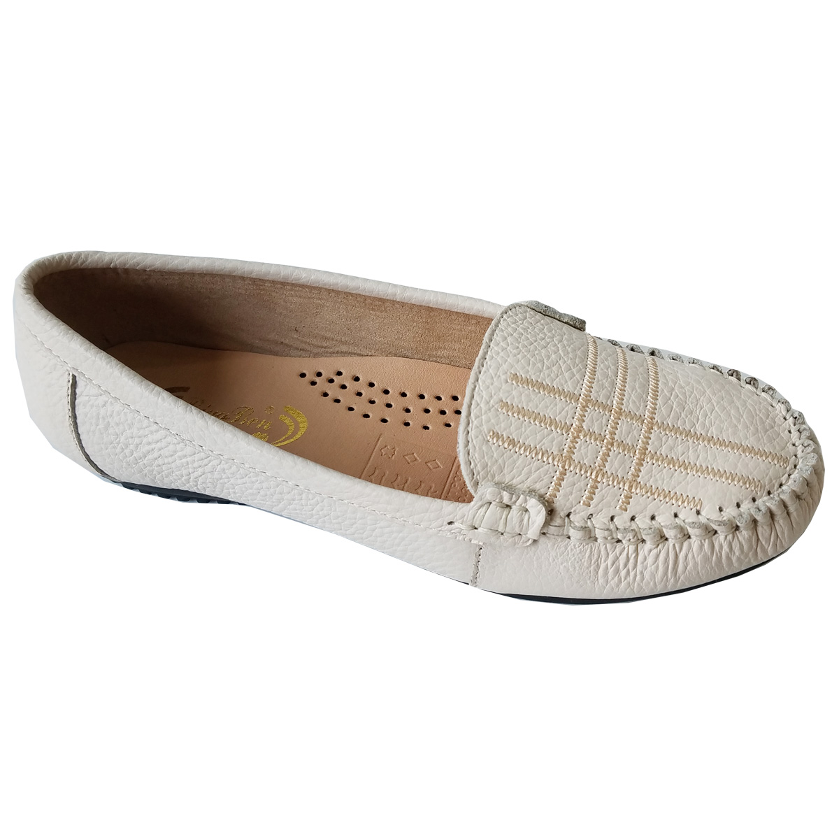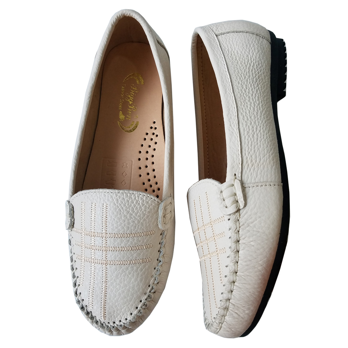 Giày Đế Bằng Giày Lười Nữ Da Bò Thật Siêu Mềm Sang Trọng Evelynv GB0916 (Kem)