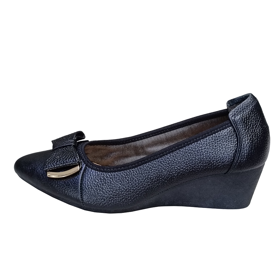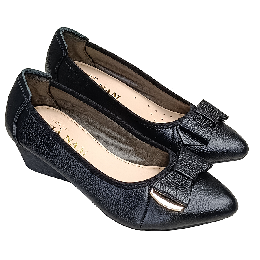 Giày đế xuồng 5cm da bò thật mũi nhọn màu đen
