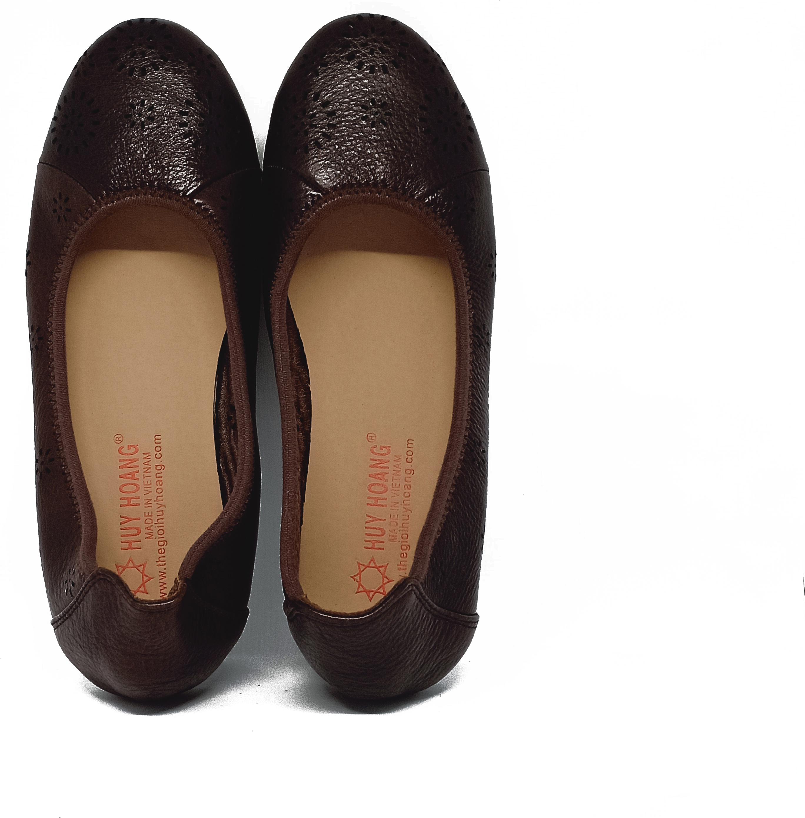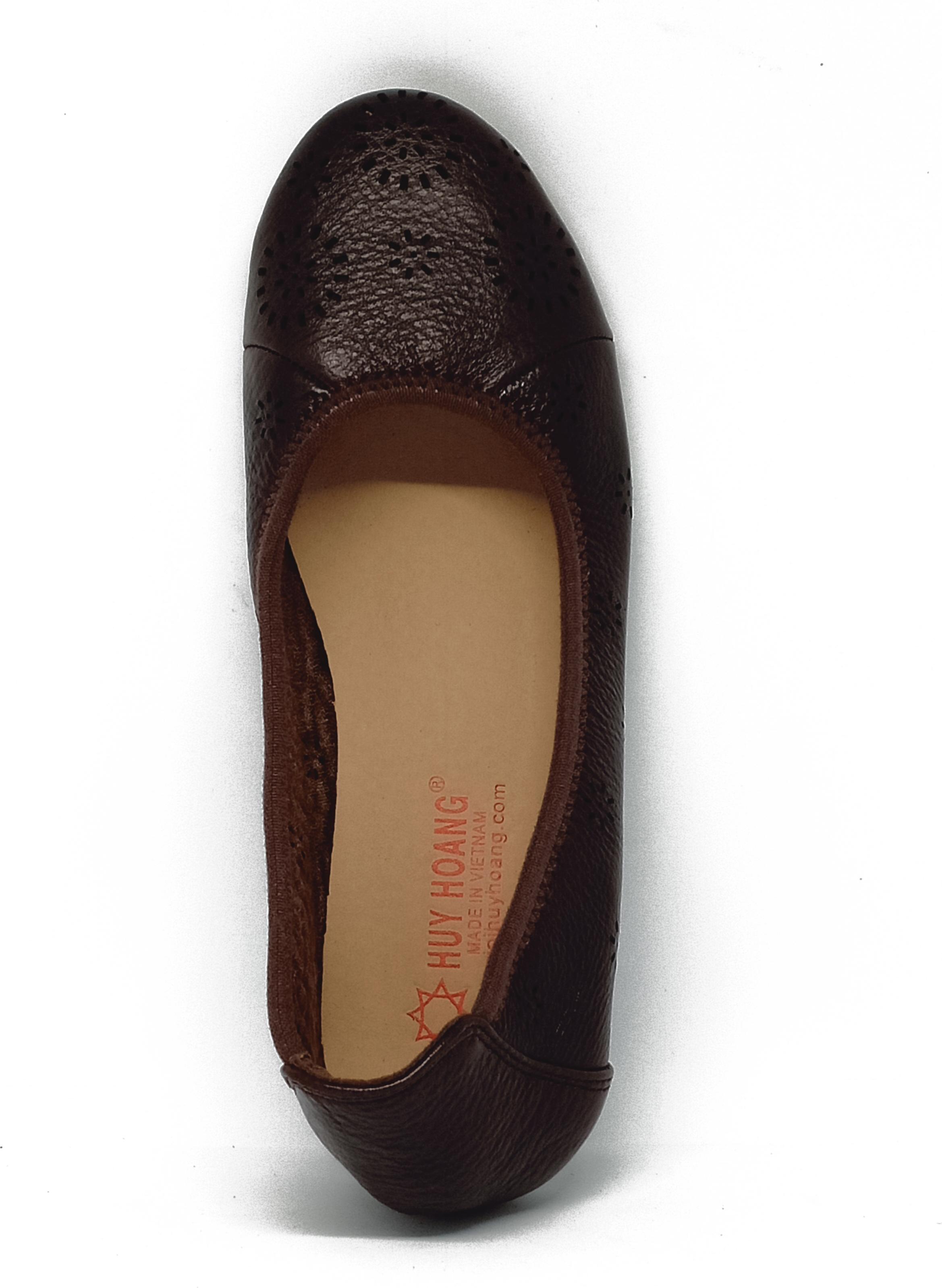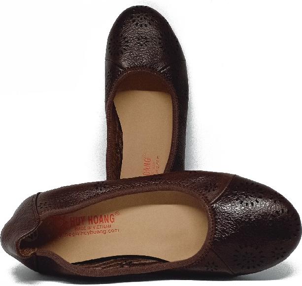 Giày nữ hoa văn Huy Hoàng da bò màu nâu 7952