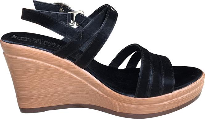 ✨Giày saldan nữ TRƯỜNG HẢI màu đen da mềm mại đế xuống cao 9.5cm thời trang cao cấp nữ XDN785
