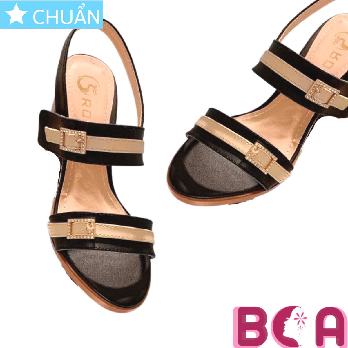 Giày sandal nữ cao gót 7 phân hai màu đen trắng hàng hiệu rosata ro336