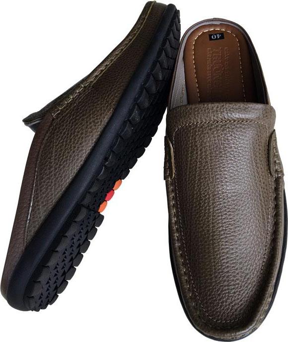 Dép bít mũi màu nâu Trường Hải da bò thật