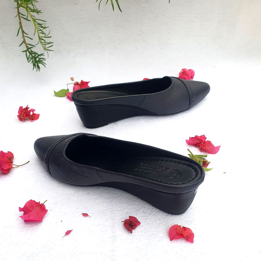 Giày Sục Nữ Giày Đế Xuồng Da Bò Thật Cực Mềm Gót Cao 5cm Evelynv 5P1816 (Đen)