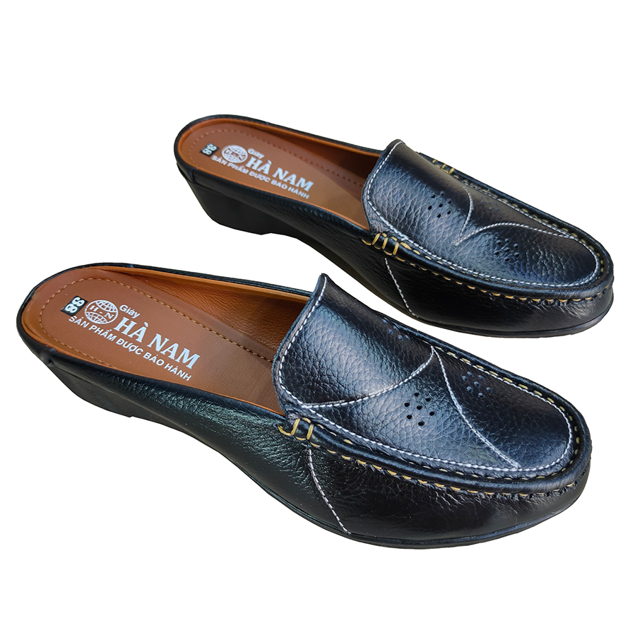 Giày Sục Nữ Giày Đế Xuồng Da Bò Thật Cực Mềm Gót Cao 5cm Evelynv 5P1316 (Đen)