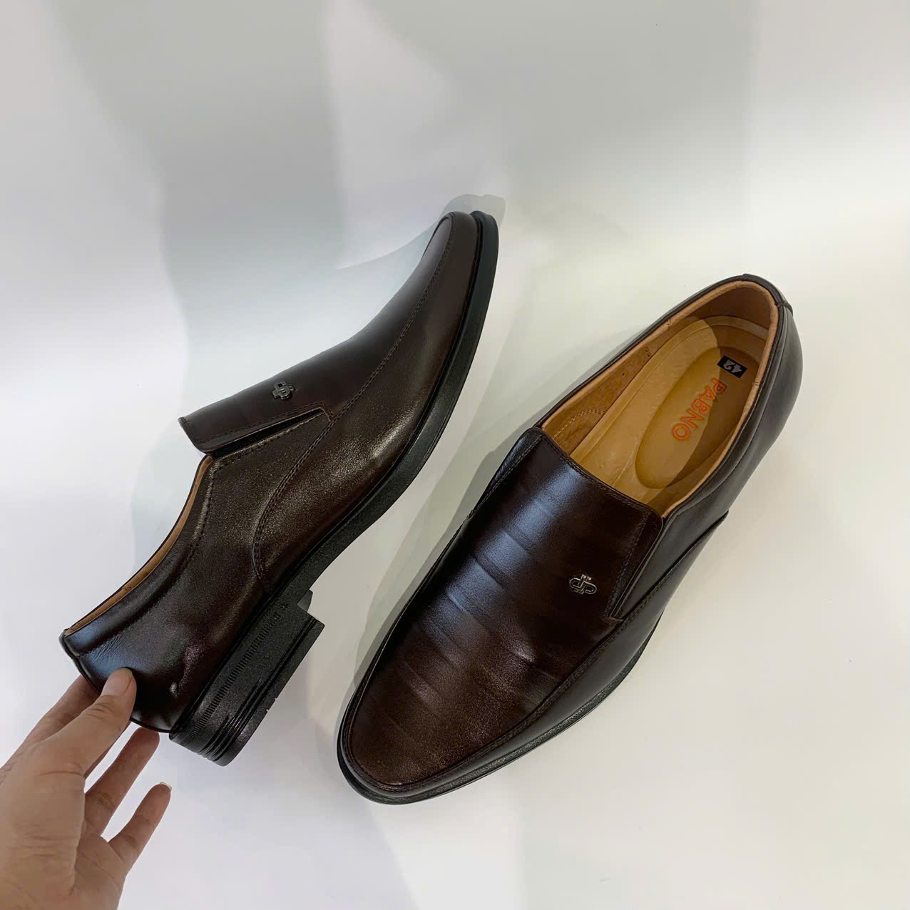 - CHI TIẾT GIÀY TÂY NAM PABNO PN18018 Chất liệu: Da bò cao cấp Kiểu dáng: Giày tây công sở, tinh tế – nam tính – sang trọng Màu sắc: Đen; Nâu Size: 39; 40; 41; 42; 43 Đế: Cao su nguyên khối, vân chống trượt
