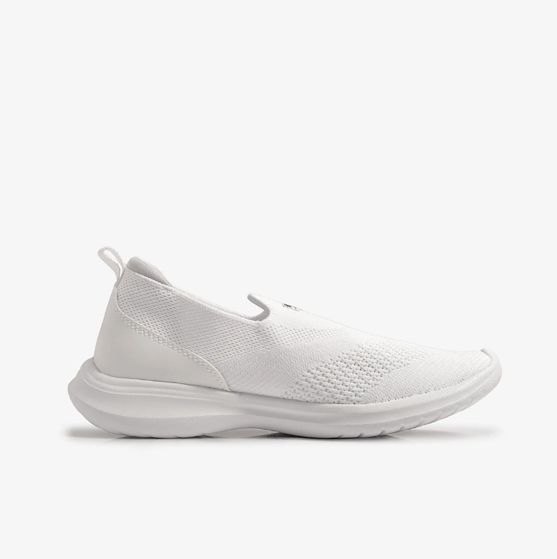 Đế giày - lựa chọn chất liệu Phylon làm nên đế giày thể thao cho các chị em. Vì tính chất nổi bật của vật liệu này là trọng lượng siêu nhẹ (nặng chỉ 300g/chiếc) và độ đàn hồi cao. Nhờ đó, phần lớn khách hàng sử dụng sản phẩm ngay từ lần đầu tiên đều có cảm giác đôi chân “nhẹ như bay”, bước đi thoải mái và thỏa thích vận động ở mọi tư thế theo cách riêng mà không lo đau mỏi chân. - Mặt đế thiết kế thêm những rãnh chống trượt, bố trí dày đặc nhằm tăng độ ma sát. Qua đó giúp người mang vận động thoải mái, bước đi vững chắc và bảo đảm an toàn tối đa, nhất là khi di chuyển trên những địa hình trơn nhẵn hoặc thời tiết ẩm ướt. Thân giày - Thân giày áp dụng công nghệ đan 2 sợi độc đáo. Nhờ vậy, sản phẩm vô cùng nhẹ và thoáng, mang lại cảm giác thoải mái nhất có thể cho người sử dụng. Không những vậy, công nghệ đan 2 sợi còn bảo đảm độ bền chặt của từng chi tiết như cổ giày, quai giày, dây giày… giữ đúng form dáng lâu dài, ít biến dạng hoặc giãn sau một thời gian sử dụng. - Bên cạnh đó, thiết kế thân giày được cải tiến mạnh mẽ bằng chất liệu vải canva, bảo đảm cảm giác thoải mái nhất có thể và hạn chế nóng bức, bí bách nếu phải mang giày trong thời gian dài. -