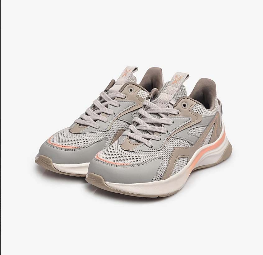 Đế giày - lựa chọn chất liệu Phylon làm nên đế giày thể thao cho các chị em. Vì tính chất nổi bật của vật liệu này là trọng lượng siêu nhẹ (nặng chỉ 300g/chiếc) và độ đàn hồi cao. Nhờ đó, phần lớn khách hàng sử dụng sản phẩm ngay từ lần đầu tiên đều có cảm giác đôi chân “nhẹ như bay”, bước đi thoải mái và thỏa thích vận động ở mọi tư thế theo cách riêng mà không lo đau mỏi chân. - Mặt đế thiết kế thêm những rãnh chống trượt, bố trí dày đặc nhằm tăng độ ma sát. Qua đó giúp người mang vận động thoải mái, bước đi vững chắc và bảo đảm an toàn tối đa, nhất là khi di chuyển trên những địa hình trơn nhẵn hoặc thời tiết ẩm ướt. Thân giày - Thân giày áp dụng công nghệ đan 2 sợi độc đáo. Nhờ vậy, sản phẩm vô cùng nhẹ và thoáng, mang lại cảm giác thoải mái nhất có thể cho người sử dụng. Không những vậy, công nghệ đan 2 sợi còn bảo đảm độ bền chặt của từng chi tiết như cổ giày, quai giày, dây giày… giữ đúng form dáng lâu dài, ít biến dạng hoặc giãn sau một thời gian sử dụng. - Bên cạnh đó, thiết kế thân giày được cải tiến mạnh mẽ bằng chất liệu vải canva, bảo đảm cảm giác thoải mái nhất có thể và hạn chế nóng bức, bí bách nếu phải mang giày trong thời gian dài. -