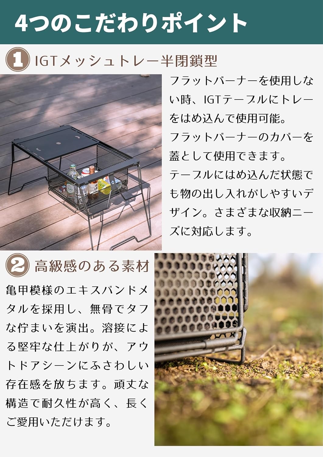 Mặt bàn IGT Campingmoon CK-3650 thiết kế 2 mô đun tiêu chuẩn cho hệ IGT có thể kết hợp và tùy chỉnh cá nhân hóa theo ý muốn người sử dụng. Chất liệu sắt mạ