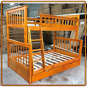 + Chất liệu: Khung giường gỗ thông Newzealand, phân tầng, Vách, đáy hộc gỗ công nghiệp, thang giường MDF chịu lực + Kích thước: kích thước phủ bì, tầng trên ưới 1mx2m Giường tầng hộp