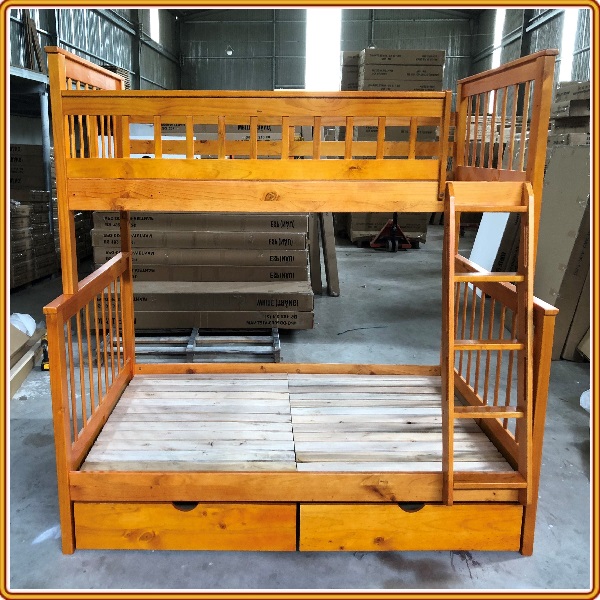 + Chất liệu: Khung giường gỗ thông Newzealand, phân tầng, Vách, đáy hộc gỗ công nghiệp, thang giường MDF chịu lực + Kích thước: kích thước phủ bì, tầng trên ưới 1mx2m Giường tầng hộp