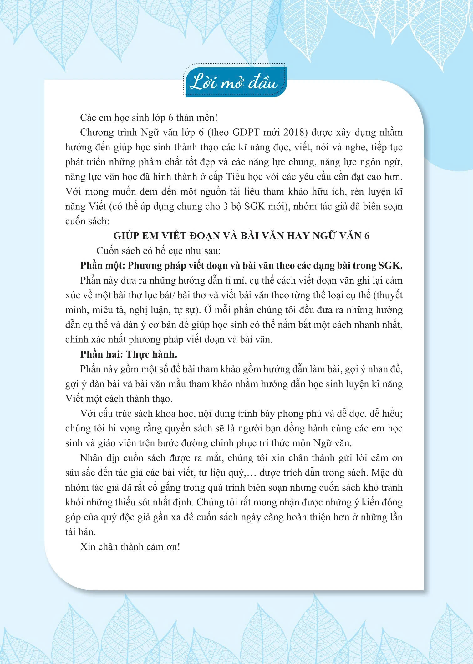 Giúp em viết đoạn và bài văn hay Ngữ Văn 6 giúp học sinh thành thạo các kĩ năng đọc, viết, nói và nghe, tiếp tục phát triển những phẩm chất tốt đẹp và các