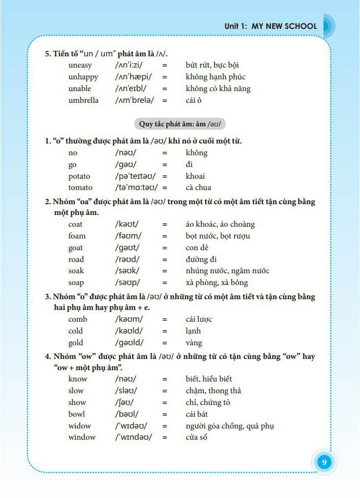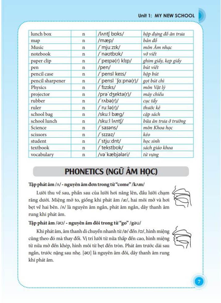 - Bài tập: Sau mỗi bài sẽ có hai bài kiểm tra. Bài tập được biên soạn đa dạng, phong phú, bám sát chương trình và sách giáo khoa, trình bày khoa học dễ hiểu. Ngoài ra, mỗi bài còn có phần nghe, nói kèm theo đĩa CD do chính người bản ngữ phát âm giúp các em có thể nâng cao kỹ năng nghe, nói của mình.