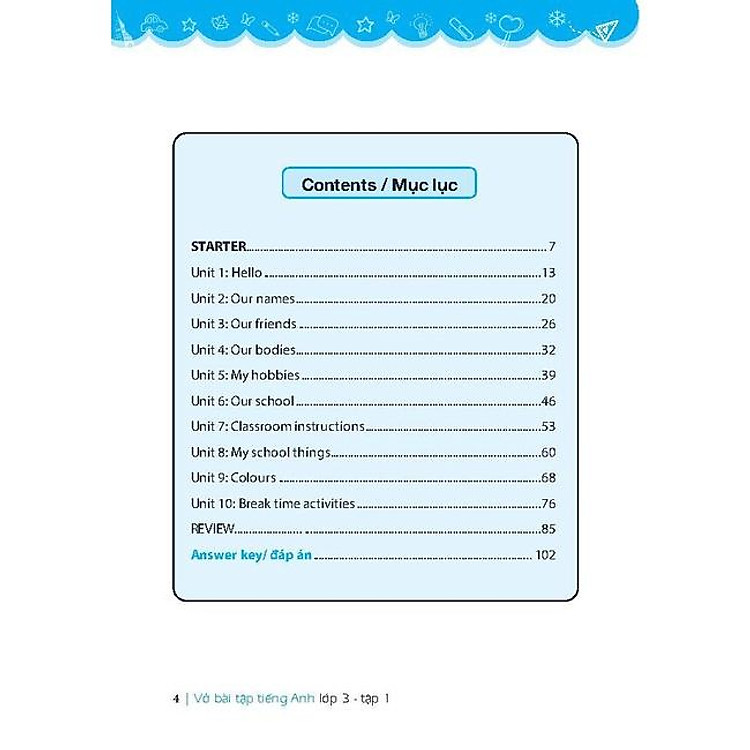 Vở bài tập Tiếng Anh lớp 3 được biên soạn với hệ thống bài tập vô cùng đa dạng. Mỗi đơn vị bài tập gồm 4 phần: