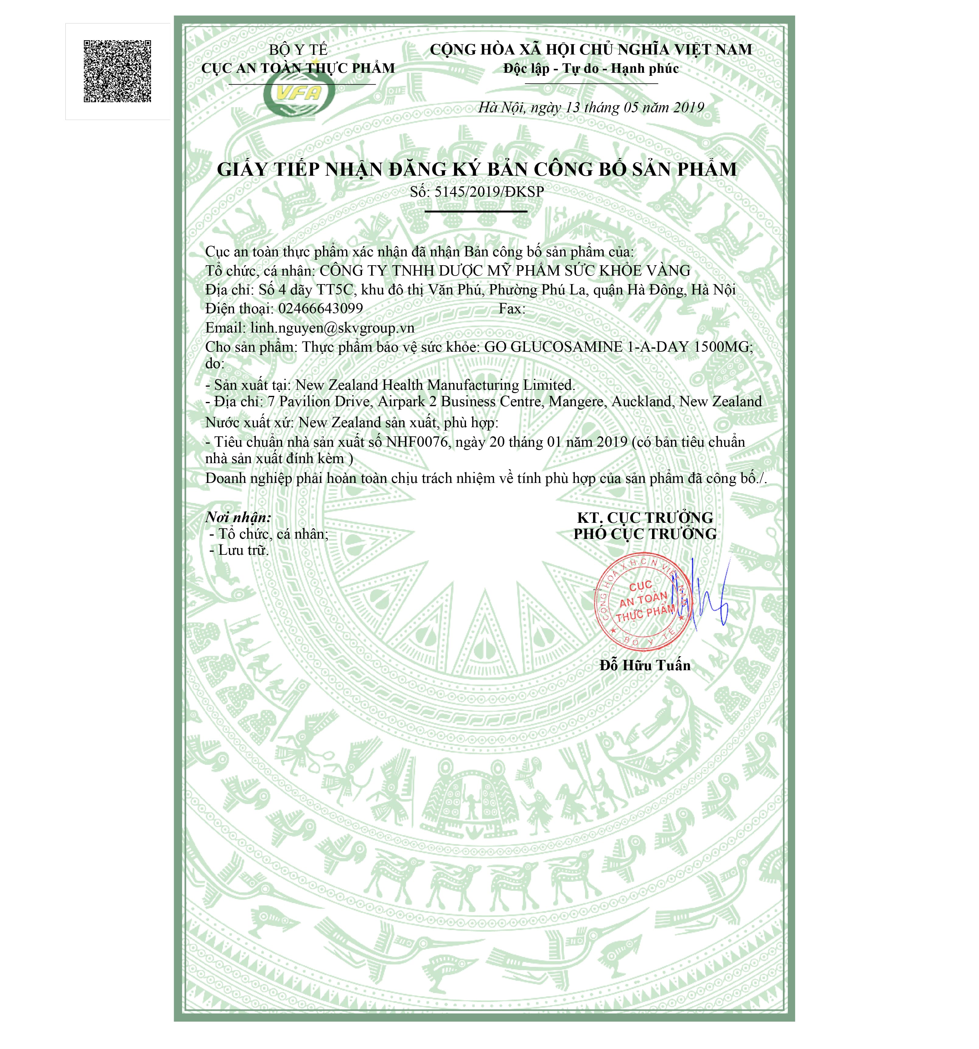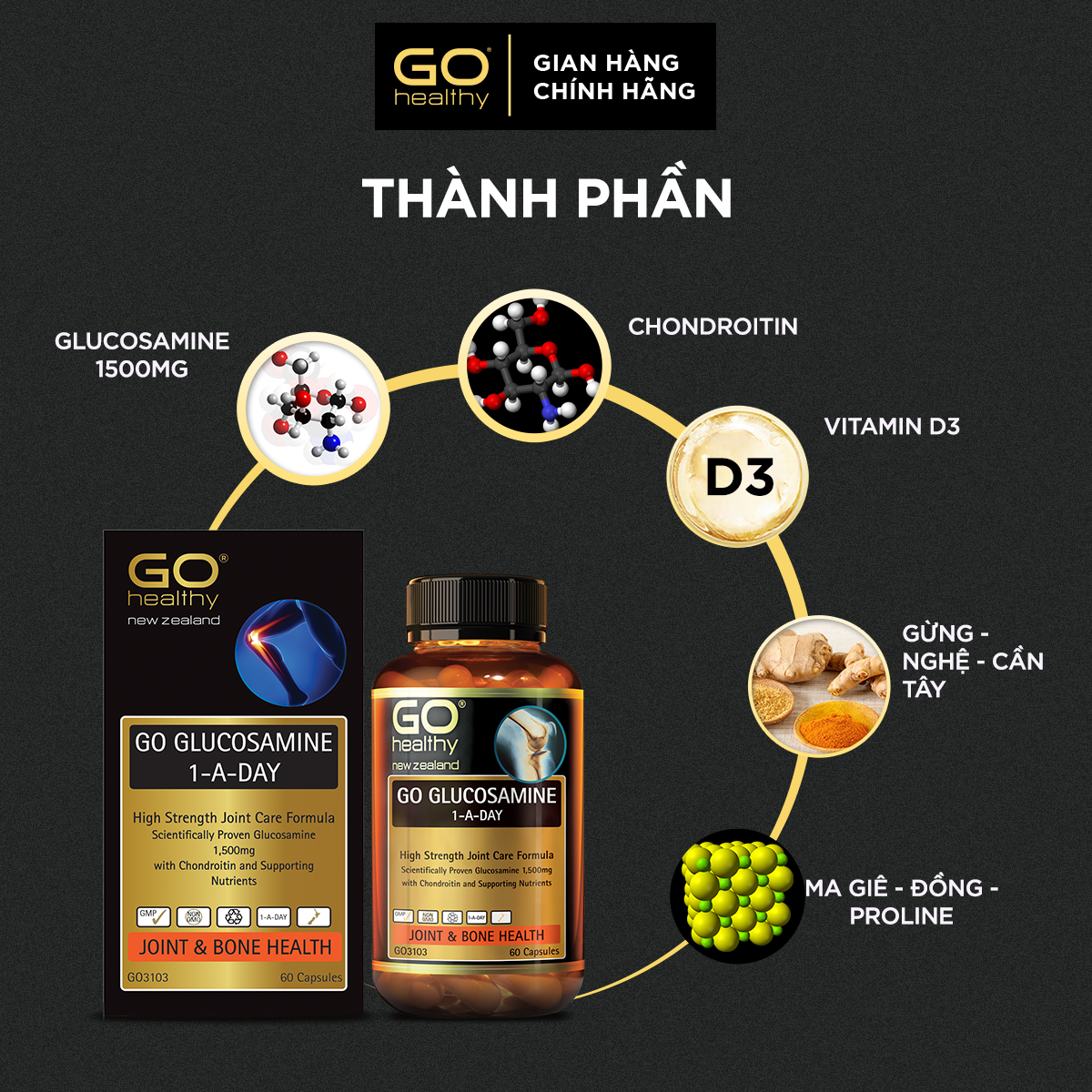 NHÃN MỚI GO GLUCOSAMINE 1-A-DAY 1500MG