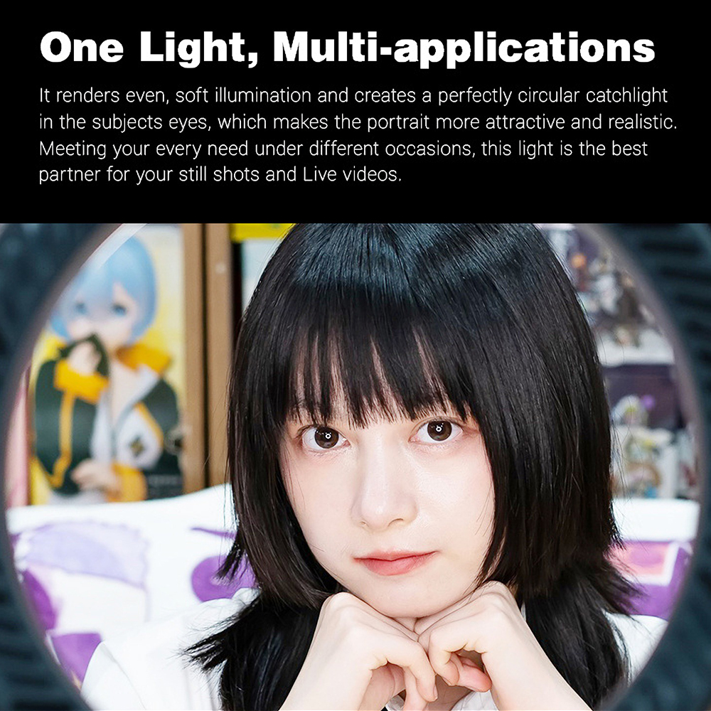 【Beautiful Catchlights of Portrait Photography】The LED ring light renders even, soft illumination and creates perfectly circular catchlights in the model eyes, which makes the portrait more attractive.