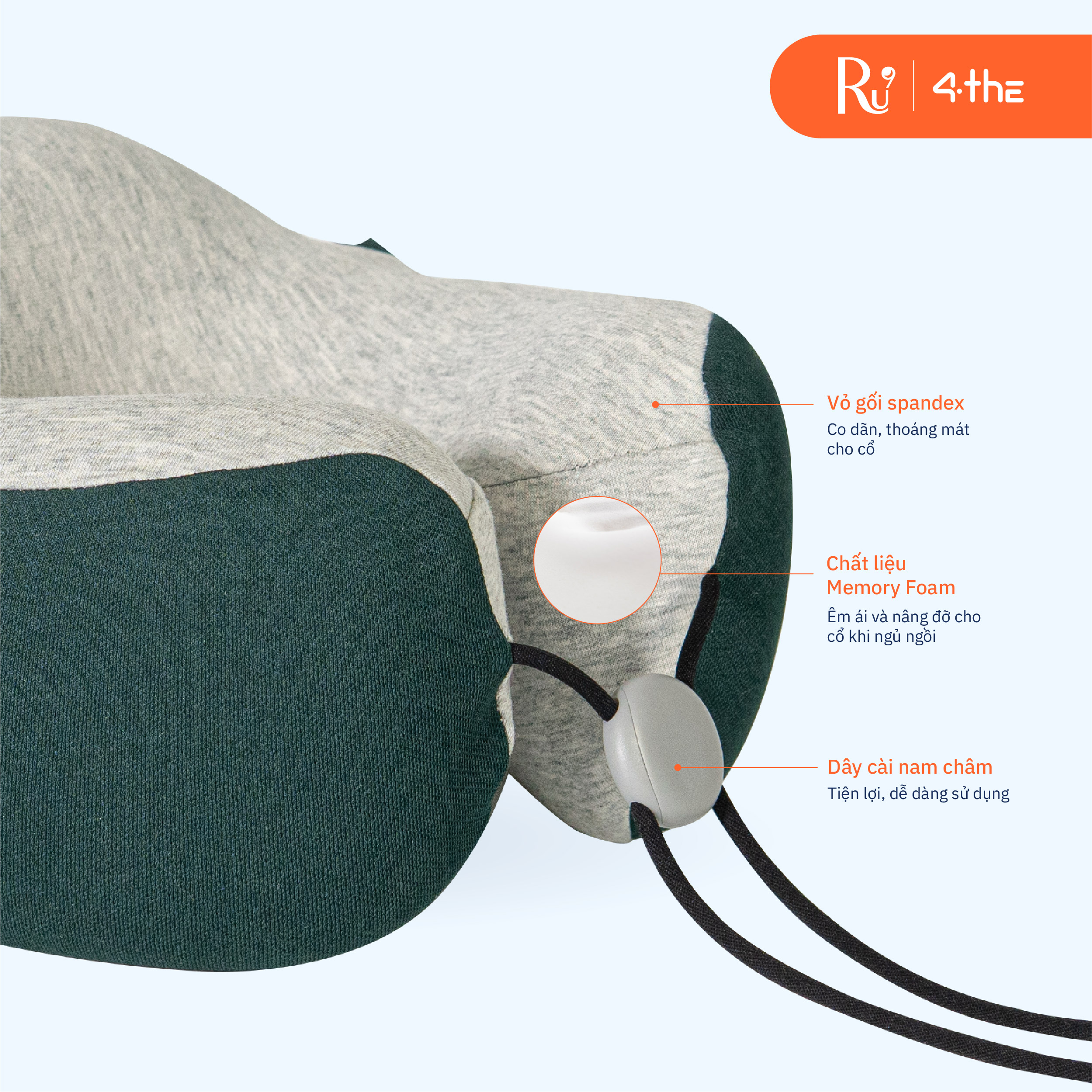 Cấu tạo: - Neck Pillow G có thành phần gồm vỏ và Memory Form cao cấp, vệ sinh dễ dàng. - Phần miệng gối có dây kéo an toàn. - Dây kéo YKK đạt chuẩn