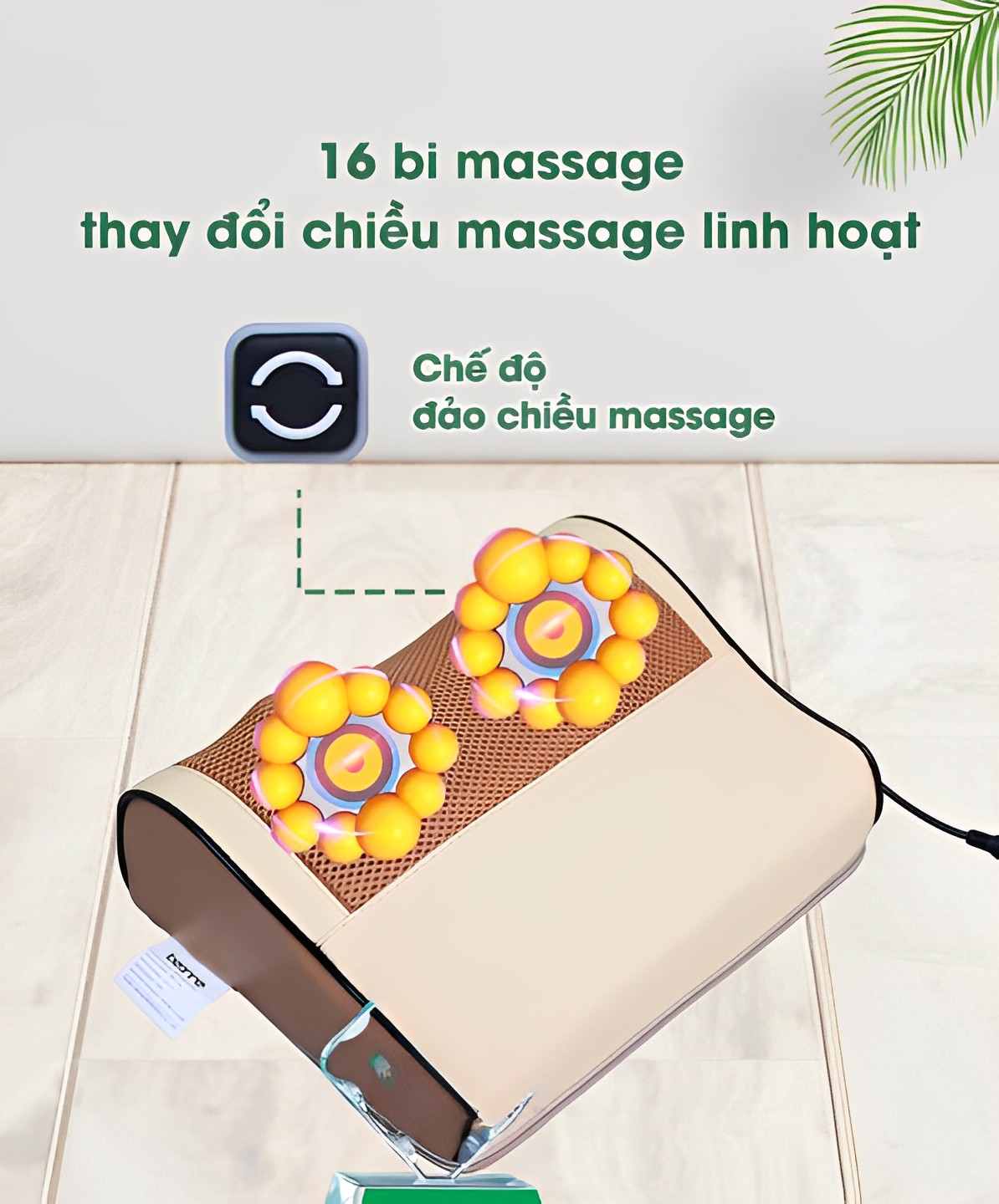16 viên bi được trang bị trong máy chuyển động liên tục, xoay đảo chiều tác động trực tiếp vào các huyệt vị giúp giảm ngay tình trạng căng cứng, đau mỏi.