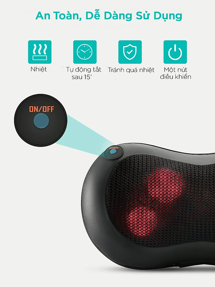 GỐI MASSAGE 8 BI HỒNG NGOẠI TRỊ LIỆU ĐAU MỎI VAI GÁY Còn gì tuyệt vời hơn khi sau mỗi ngày làm việc căng thẳng,mệt mỏi, đau lưng vai gáy được tựa mình trên chiếc