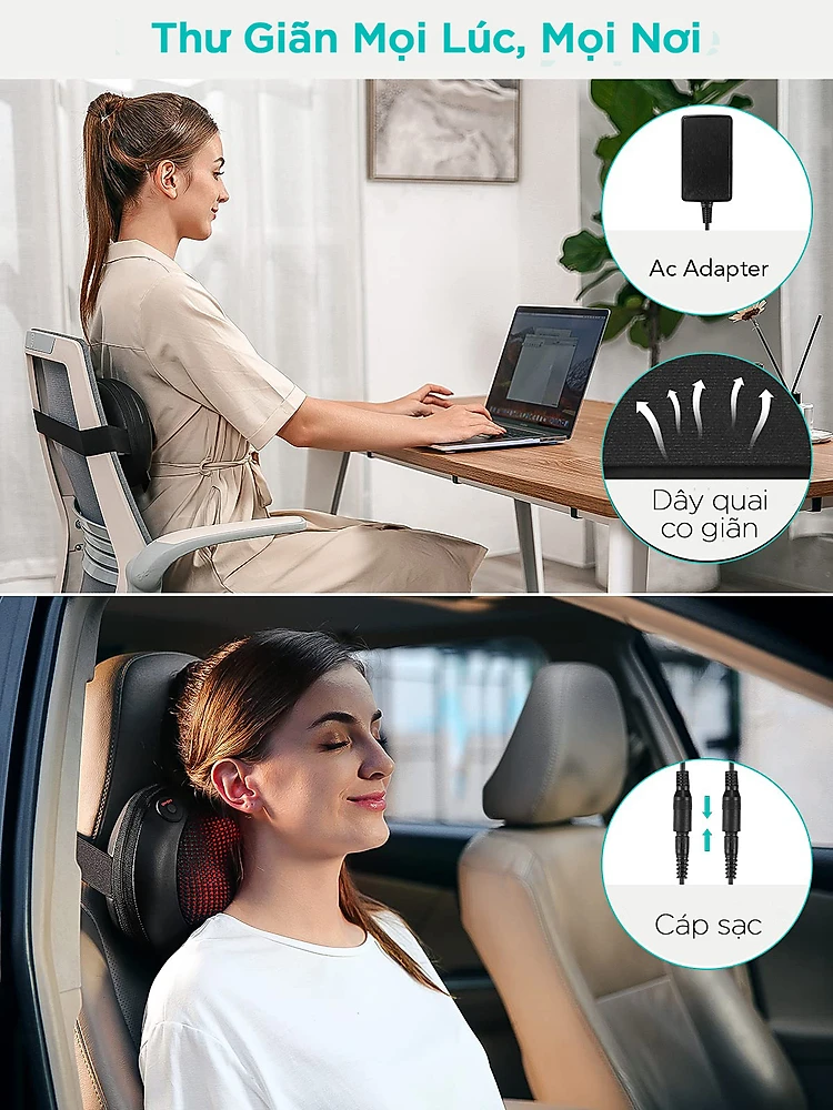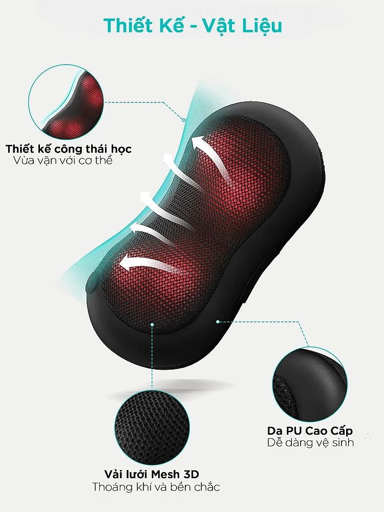 Gối Massage hồng ngoại đa năng - Sử dụng được cho toàn bộ cơ thể – cổ, vai, gáy, lưng trên, lưng dưới, cẳng chân và bàn chân - Thiết kế khoa học tăng thêm