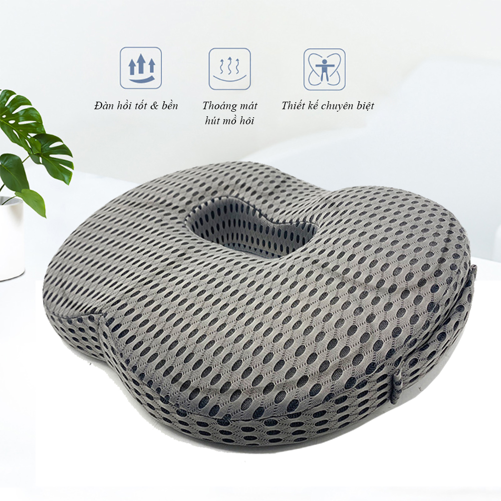 - Đặc biệt phù hợp với khí hậu Việt Nam: ruột gối đục 20 lỗ thoáng khí & vỏ gối cấu trúc tổ ong với hàng trăm lỗ thoát khí và được may từ loại vải 4D siêu thoáng Hình dáng độc đáo như chiếc bánh Donut, hình vòng tròn, lõm và rỗng phần trung tâm nên khi ngồi lên gối lực sẽ phân tán đều ra quanh mông, không để phần hậu môn và tầng sinh môn tiếp xúc trực tiếp với bề mặt của ghế. MÔ TẢ SẢN PHẨM GỐI LÓT MÔNG CHỐNG TRĨ EMA Kích thước: Gối được thiết kế theo vóc dáng người Việt với kích thước dài 44cm rộng 39cm và cao 8cn. Kích thước này giúp gối PHÙ HỢP với hầu hết các loại ghế hiện nay Ruột gối: được làm từ chất liệu Memory Foam hay còn gọi là cao su non với đặc tính đàn hồi chậm, độ bền từ 5-7 năm. Đây là vật liệu do trung tâm vũ trụ NASA phát minh vào năm 1966 nhằm nâng cao sự an toàn cho các phần nệm của thiết bị bay nhằm giảm thiểu tối đa áp lực tác động lên các phi hành gia và rung chấn trong quá trình phóng tàu vũ trụ. Ngày này chất liệu này được sử dụng rất nhiều trong ngành công nghiệp gối - đệm Vỏ gối: làm từ chất liệu vải 4D cấu trúc tổ ong có các lỗ thoáng khí, thấm hút mồ hôi. Vỏ gối có nhiều màu sắc phù hợp với tất cả mọi người. Đặc biệt mặt dưới của gối có thiết kế các hạt chống trượt giúp tăng ma sát với bề mặt đặt gối. Giúp gối cố định không bị xô lệch khi ngồi. Thêm nữa chỉ có ở gối lót mông chống trĩ Ema là quai xách bên hông giúp thuận tiện mang theo, có thể treo gọn nếu không sử dụng Màu sắc: Gối có 2 màu chính là màu Xanh lưới và màu Xám lưới