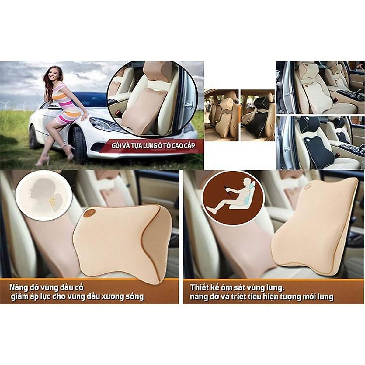 - Bộ gối tựa lưng và tựa đầu ô tô tạo cảm giác thoải mái cho lưng và gáy