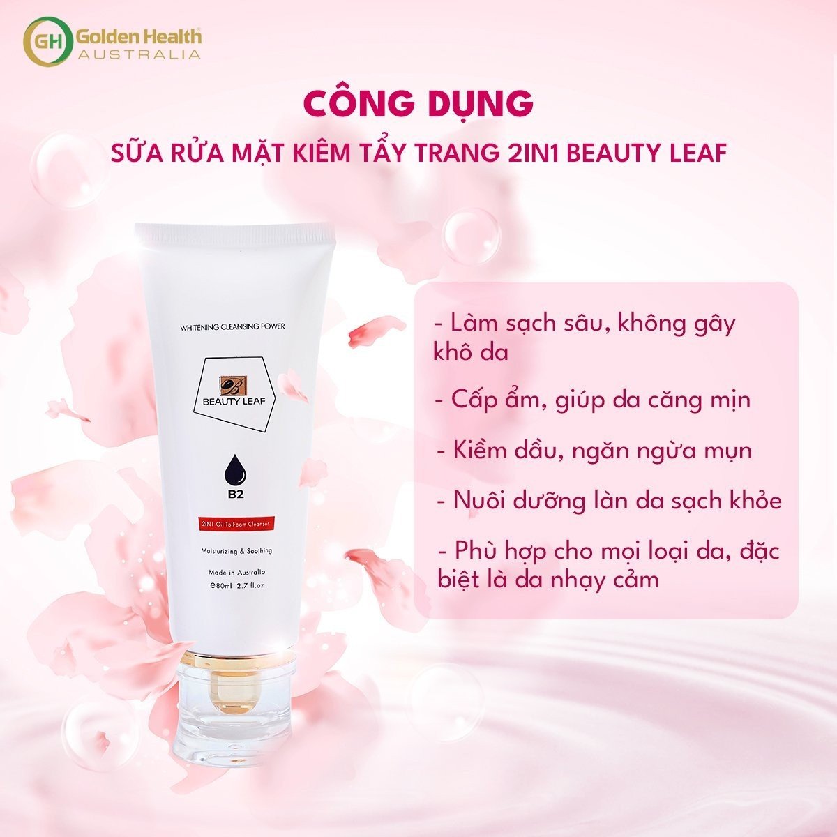 [GOLDEN HEALTH] Sữa Rửa Mặt Kiêm Tẩy Trang 2 Trong 1, Làm Sạch Sâu, Sáng Da, Cấp Ẩm Và Giúp Da Căng Mịn Không Gây Khô Da Beauty Leaf 80ml - Nhập Khẩu Chính Ngạch Từ Úc