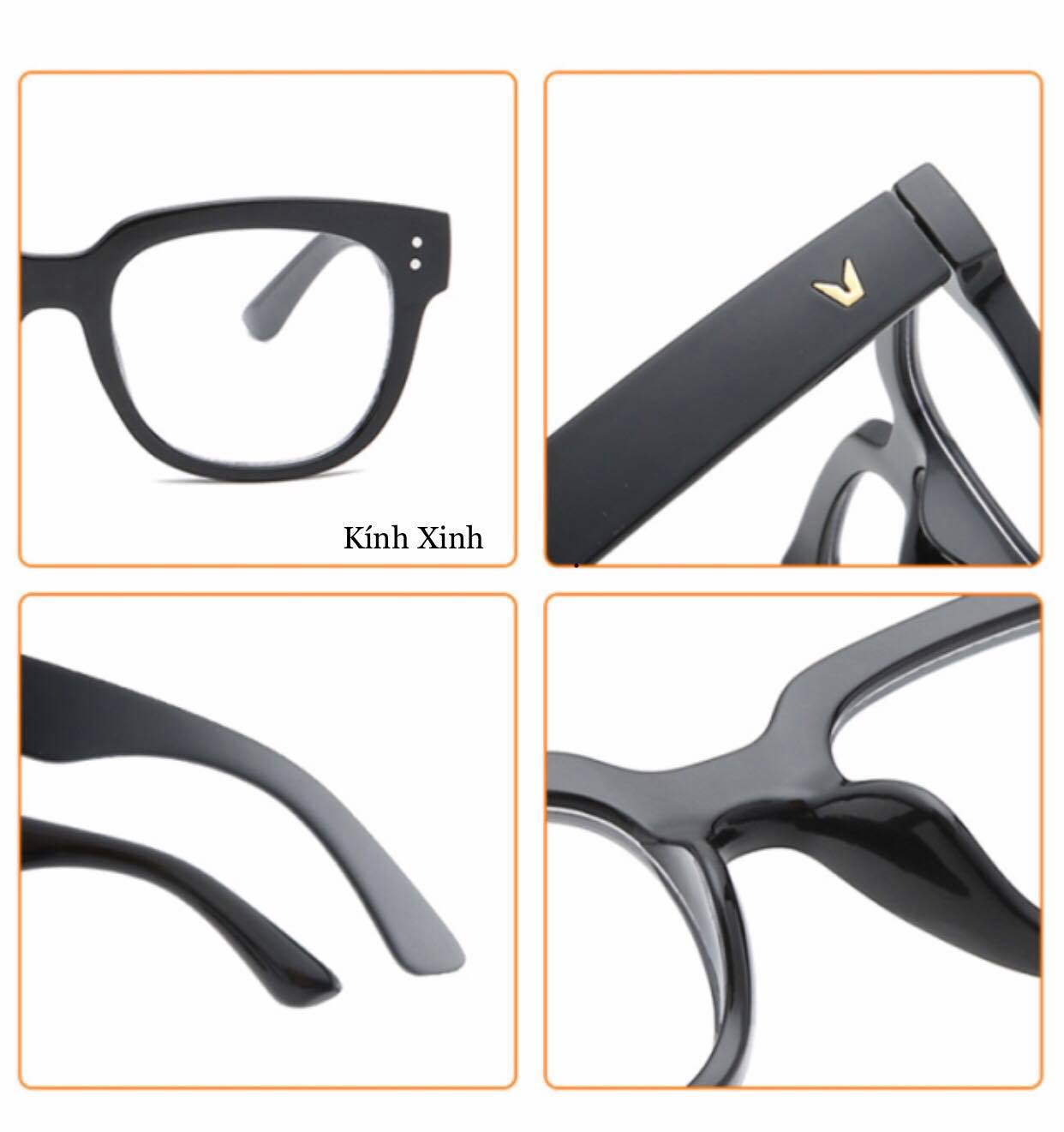 - Gọng kính bằng chất liệu nhựa, bền và tạo cảm giác thoải mái cho người sử dụng. - Có thể thay tròng 0 độ/cận/viễn/loạn theo nhu cầu sử dụng. - Dáng Unisex phù hợp
