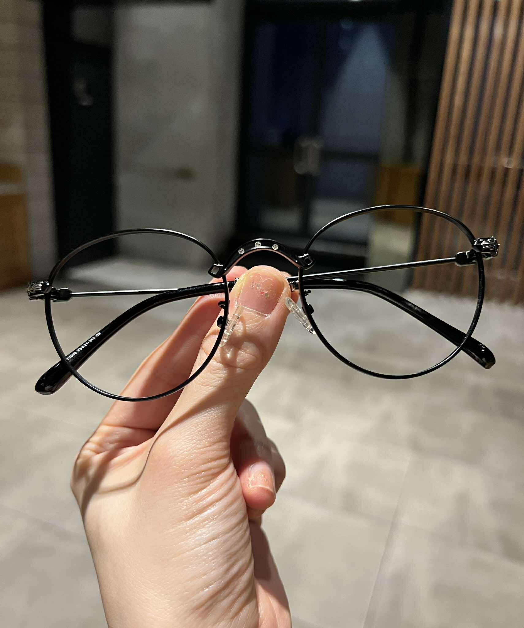 ✨Gọng Kính cận, Kính giả cận Mắt tròn kim loại màu đen cao cấp