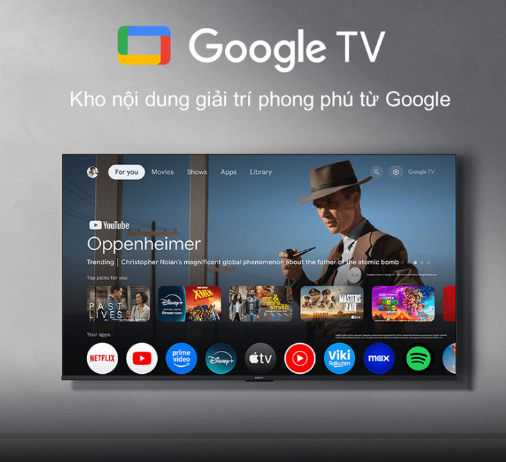 - Kho ứng dụng phong phú – Hỗ trợ YouTube, Netflix, FPT Play, VieON, Spotify… đáp ứng mọi nhu cầu giải trí. Hệ điều hành Google tivi tích hợp trợ lý ảo tiên tiến