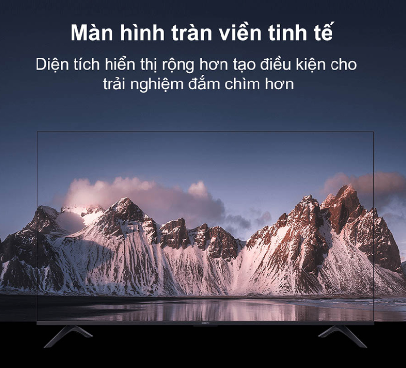 - Thiết kế Tivi Xiaomi A 43 2026 4K tinh tế, sang trọng Tivi Xiaomi A 43 2026 4K nổi bật với thiết kế viền siêu mỏng, giúp mở rộng góc nhìn và tạo cảm giác hình ảnh tràn viền. Chân đế chữ V úp ngược không chỉ giúp tivi vững chãi trên mọi bề mặt mà còn tôn lên vẻ sang trọng, hiện đại.