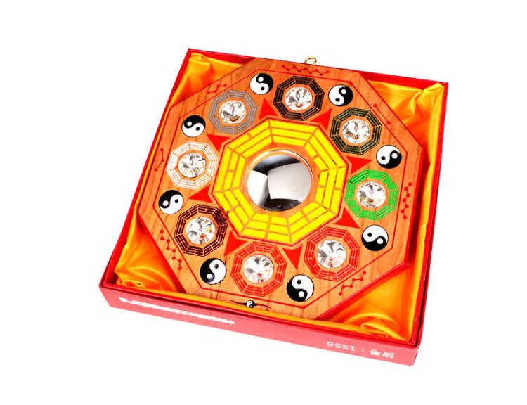 Đồng hồ phong thủy bát quái gỗ đào treo tường phòng kháchThái cực trấn trạch mang lại may mắn tài lộ