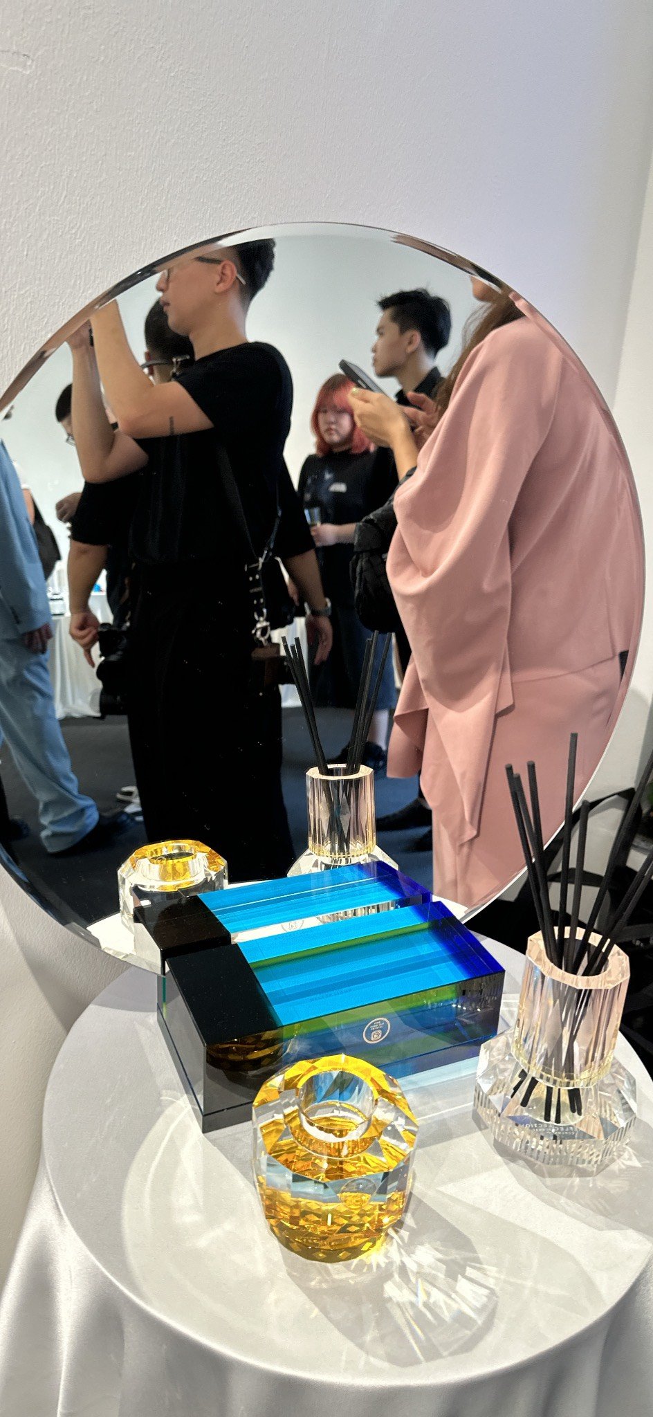 Chiếc gương có được sức mạnh và sự rạng rỡ nhờ chân đế pha lê chắc chắn, trong khi độ chính xác và tính nghệ thuật của thân gương toát ra năng lượng điện khí hóa.