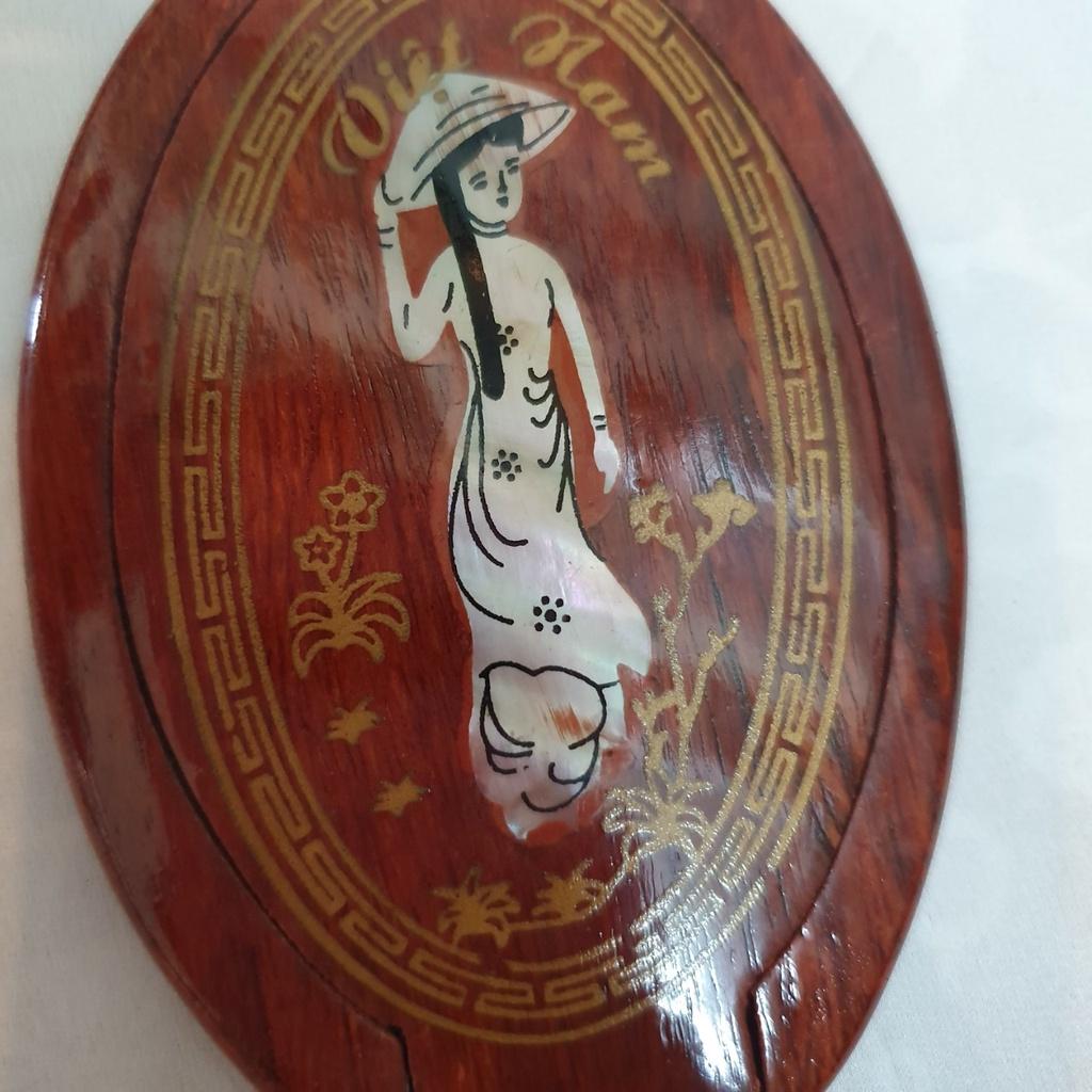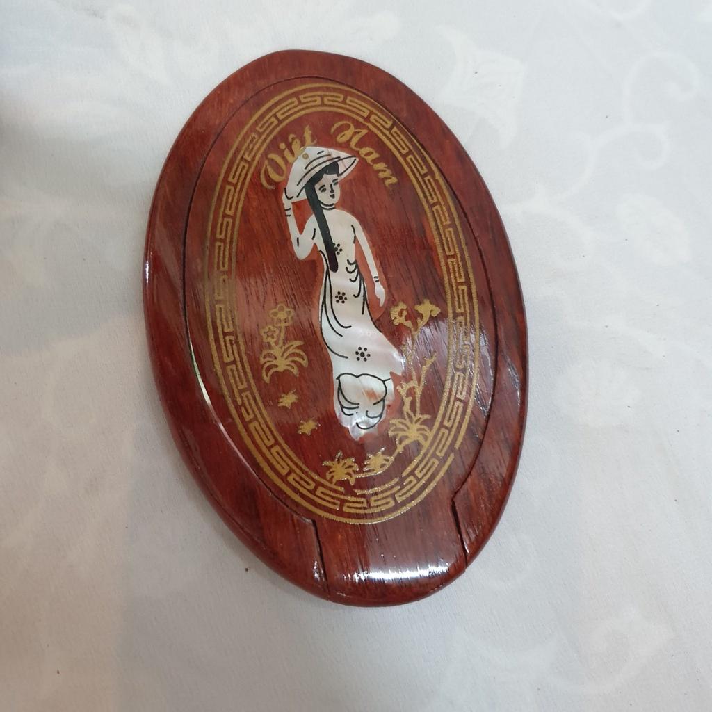 ✨Gương gỗ trang điểm mini khảm xà cừ hình cô gái áo dài Việt Nam